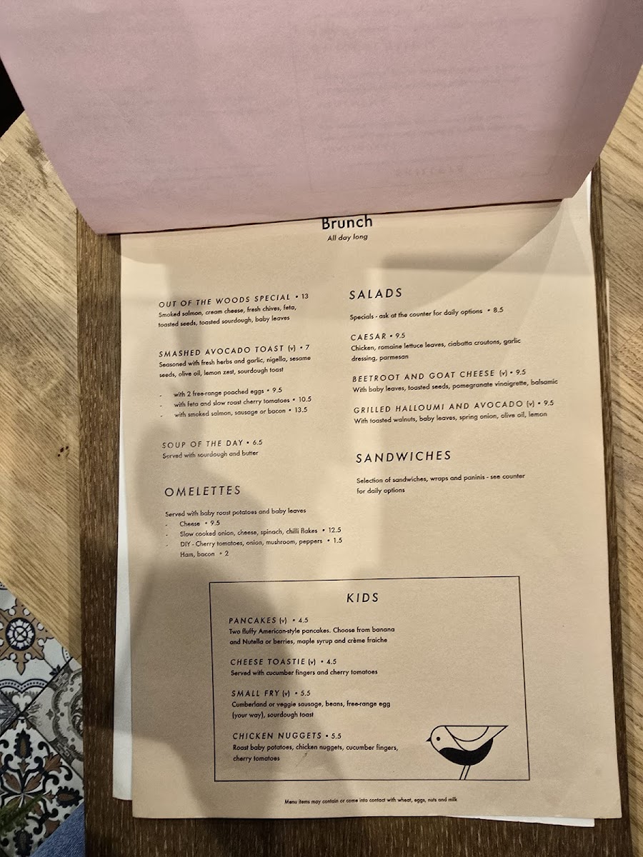 Located at 83 Colworth Rd in London, Out of the Woods emerges as a charming café that captures the essence of comfort and community. Their menu offers a delightful range of options for every palate, from vibrant salads like the classic Caesar and the tangy Beetroot and Goat Cheese to kid-friendly favorites such as pancakes and chicken nuggets.
